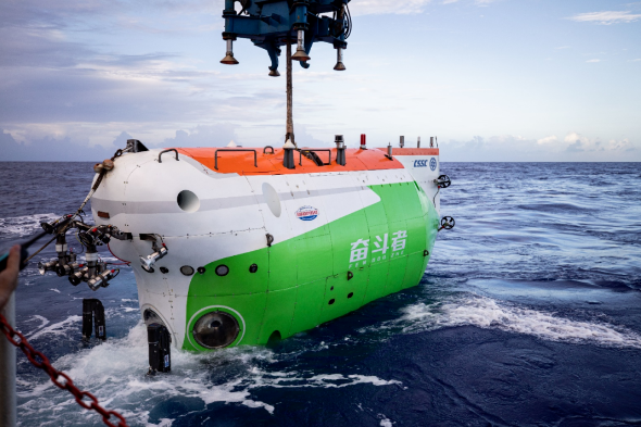 △潛入海底萬米的深潛器“奮斗者號(hào)”