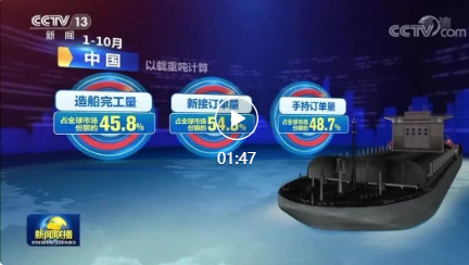 數(shù)據(jù)顯示,1—10月,中國造船完工量、新接訂單量、手持訂單量以載重噸計算,分別占全球市場份額的45.8%、54.3%和48.7%,繼續(xù)保持全球第一。此外,我國船舶企業(yè)國際競爭能力增強,6家船企新接訂單量進入全球前10強。