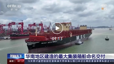 7月24日,由中國船舶集團(tuán)旗下廣船國際聯(lián)合中船貿(mào)易建造的16000TEU集裝箱船1號船命名交付,中央電視臺《朝聞天下》進(jìn)行了報道。