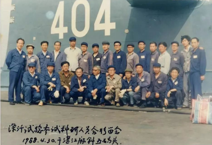 ▲黃旭華(后排左一)同參與深潛試驗(yàn)的科研人員合影(1988年4月30日攝)