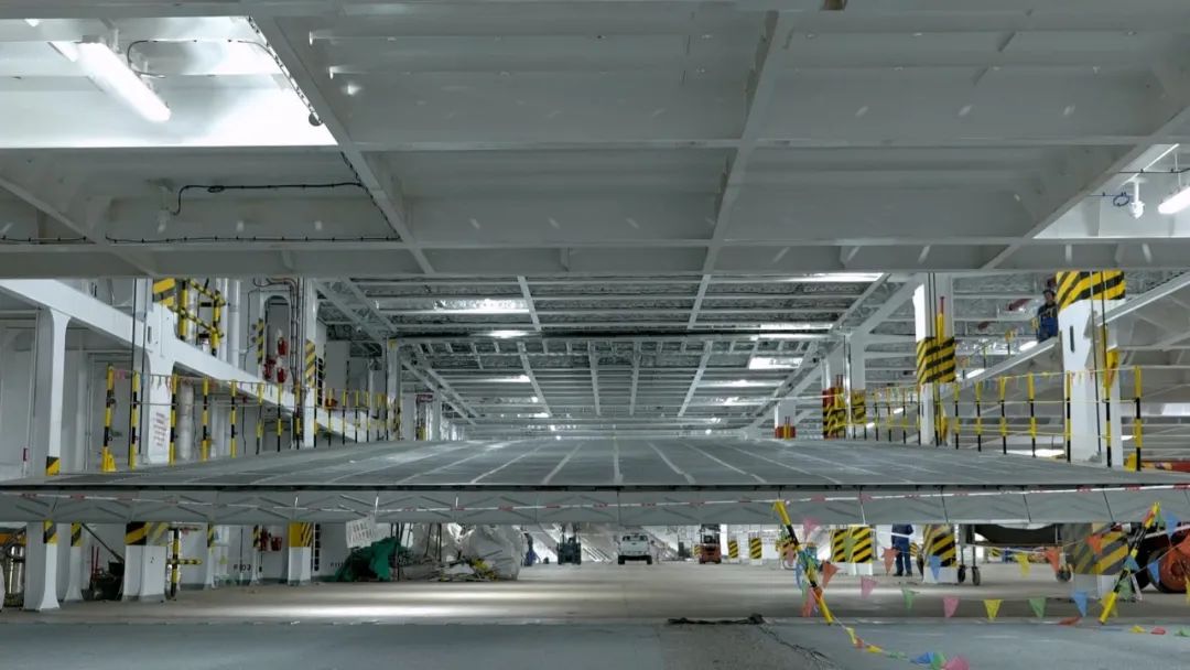 除了“薄”,船上承載車輛的甲板還有一個(gè)特點(diǎn): 可根據(jù)汽車高度調(diào)整層高。 一艘船的滾裝設(shè)備和活動甲板多達(dá)100塊,船體搭載過程中任何一個(gè)環(huán)節(jié)出現(xiàn)偏差,都會導(dǎo)致活動甲板無法安裝。而廣船國際對船舶生產(chǎn)全過程實(shí)施嚴(yán)格的精度管理,目前已經(jīng)完全攻克相關(guān)技術(shù),真正實(shí)現(xiàn)了船舶工業(yè)體系的進(jìn)階。