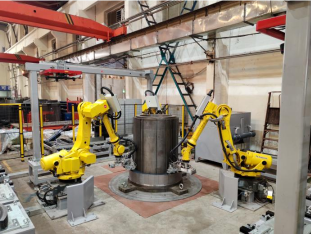 近日,中國船舶集團(tuán)旗下杰瑞自動(dòng)化承研的定子鐵芯疊裝機(jī)器人工作站項(xiàng)目通過驗(yàn)收并投入使用,實(shí)現(xiàn)了大型高壓異步電機(jī)關(guān)鍵配套——定子鐵芯的自動(dòng)化生產(chǎn)。