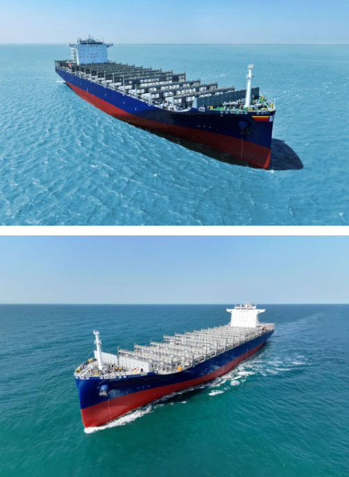 9月3日,中國(guó)船舶集團(tuán)旗下外高橋造船聯(lián)合中船貿(mào)易為泰國(guó)RCL公司建造的系列7000TEU集裝箱船的第二艘船“ITTHI BHUM”號(hào)、第三艘船“HEMMA BHUM”號(hào)命名交付。