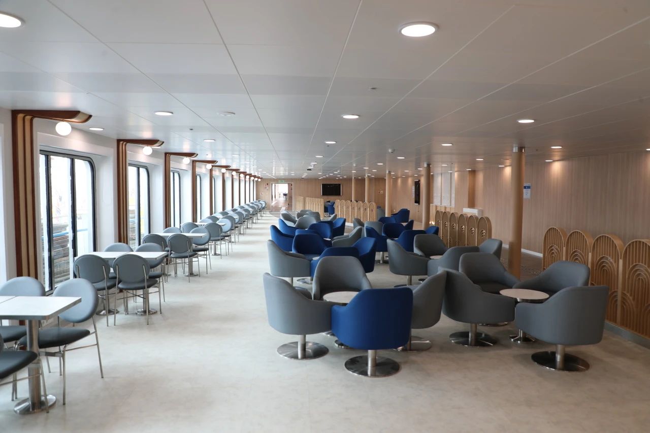 另外,該船還配有完整的隔離病房及防疫區(qū)等,空調(diào)通風(fēng)也進行了特殊設(shè)計,具備完善的生物安全應(yīng)對措施,是國內(nèi)建造的首艘取得全球最新的biosafe生物安全入級符號的豪華客滾船。