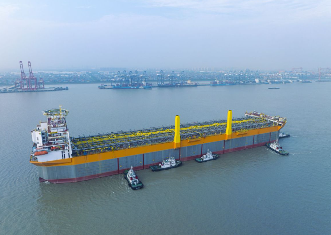 11月14日,由中國(guó)船舶集團(tuán)旗下外高橋造船為荷蘭SBM OFFSHORE公司建造的第五艘世界獨(dú)創(chuàng)230萬(wàn)桶通用型海上浮式生產(chǎn)儲(chǔ)油輪(FPSO)“捷豹”號(hào)簽字交付。