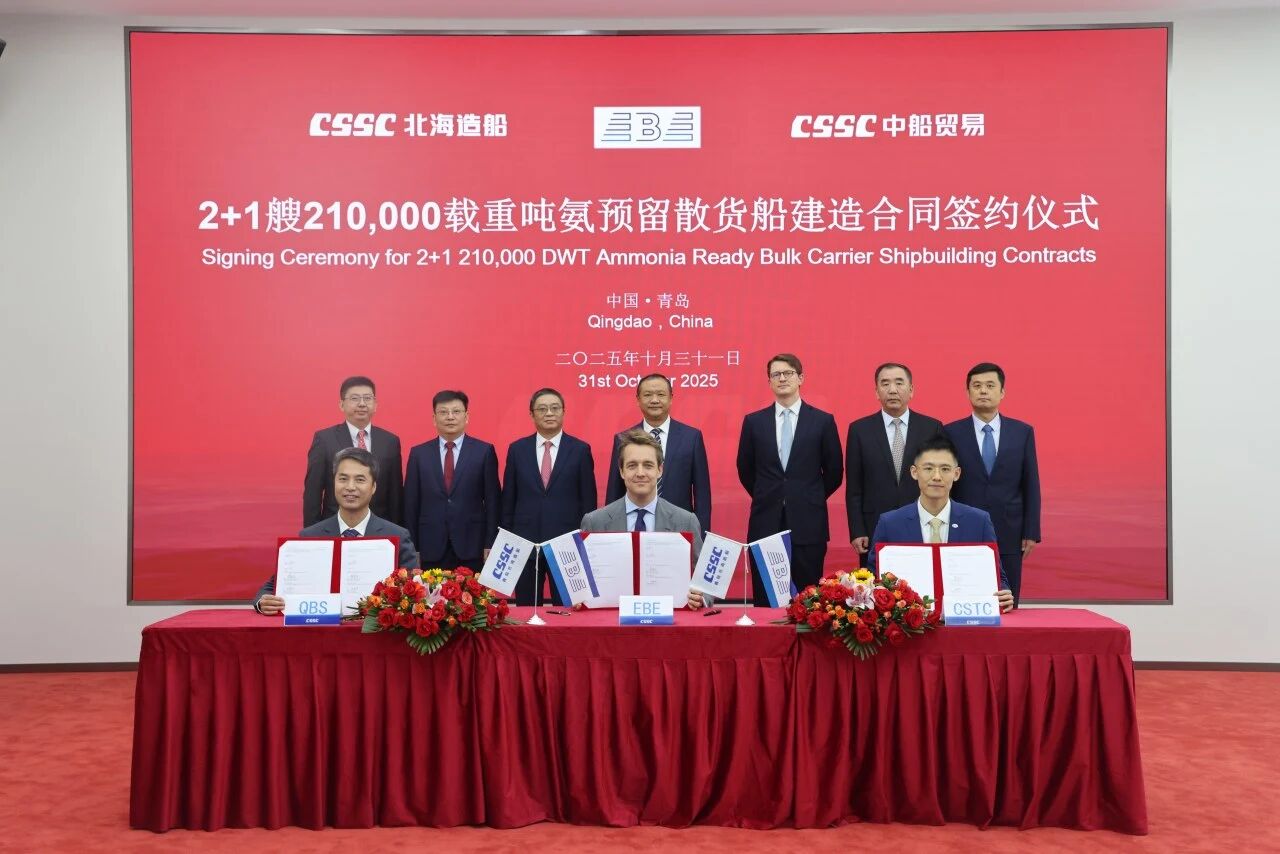 日前,中國(guó)船舶集團(tuán)有限公司旗下北海造船聯(lián)合中船貿(mào)易,與比利時(shí)航運(yùn)公司EBE成功簽署2+1艘21萬噸氨預(yù)留散貨船建造合同。此次合作是EBE公司首次在中國(guó)下單造船,體現(xiàn)了國(guó)際市場(chǎng)對(duì)北海造船建造實(shí)力的高度認(rèn)可。