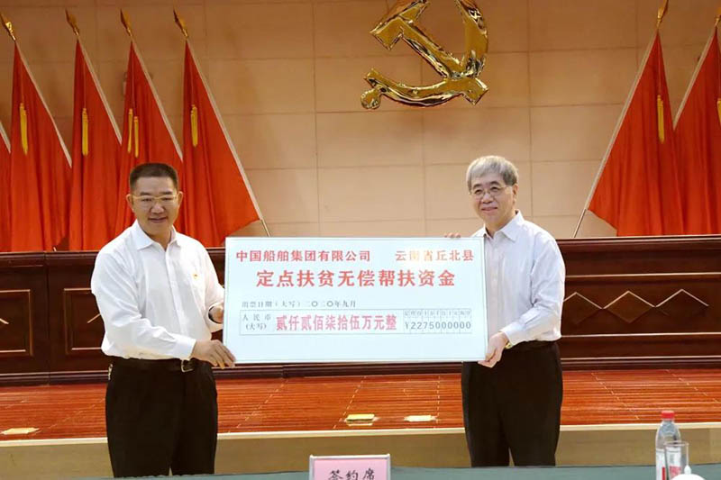 在中國(guó)船舶集團(tuán)?丘北縣定點(diǎn)扶貧工作座談會(huì)上,集團(tuán)公司和丘北縣舉行了無(wú)償幫扶資金捐贈(zèng)儀式、簽署了消費(fèi)扶貧框架協(xié)議,集團(tuán)公司產(chǎn)業(yè)扶貧基金運(yùn)營(yíng)公司太證資本與產(chǎn)業(yè)扶貧基金投資標(biāo)的公司立達(dá)爾簽訂了投資協(xié)議。